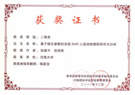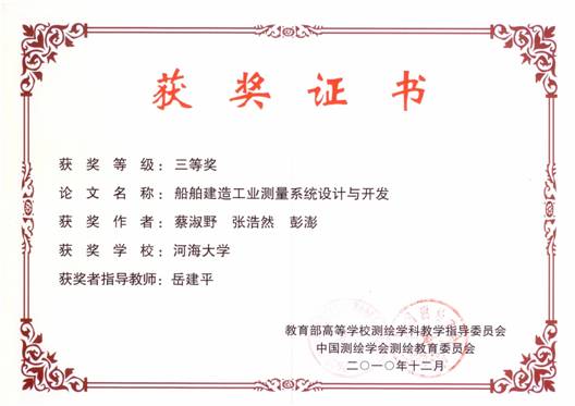 | 地学院测绘工程系员工在 第三届全国老员工测绘科技论文竞赛活动中取得优异成绩 | | 日前,由教育部高等院校测绘学科教学指导委员会、中国测绘学会测绘教育委员会与北京则泰盛业科技发展有限公司联合举办的第三届“则泰杯”全国老员工测绘科技创新论文竞赛结果揭晓,公司测绘科学与工程系员工在本次大赛中取得优异成绩,共获得一等奖1项、二等奖2项、三等奖2项。 此次大赛共吸引来自全国100余所具有测绘工程、地理信息系统专业的高校员工参加。经过近2个月的论文申报和网上展示,由以中国工程院院士宁津生为主席、全国18位专家学者组成的评委会进行了最后的评审,共评出大赛优秀论文一等奖7篇,二等奖17篇,三等奖24篇。公司betway西汉姆联测绘科学与工程系共有5篇论文获奖,其中曹奇、杨畅、牛洪涛(指导老师:郑德华)的论文《三维激光扫描技术曲面拟合方法研究》,陈喜凤、李成仁(指导老师:黄腾)的论文《GPS在桥梁振动频率监测中的应用研究》和张晓平、张明希(指导老师:杨英宝)的论文《基于极化参数的全极SAR人造地物提取研究与分析》获二等奖,蔡淑野、张浩然、彭澎(指导教师:岳建平)的论文《船舶建造工业测量系统设计与开发》和丁旭、袁豹、赵元忆(指导教师:岳东杰)的论文《基于总体最小二乘法的GPS高程拟合及其应用》获三等奖。 | |
