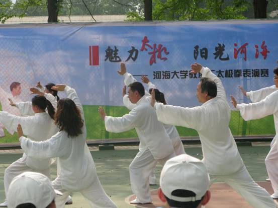 ――地学院参加学校太极拳表演赛 为配合学校阳光体育运动的开展,营造校园体育锻炼氛围,地学院众多教职工积极参加了校工会于4月29日举办2011年教职工太极拳表演赛并取得优异的成绩。太极拳历史悠久,流派众多,传播广泛,深受人们的喜爱。太极拳动作刚柔相济,是既可技击防身,又能增强体质、防治疾病的传统拳术。地学院分工会积极组织并参与了校工会开展的太极拳培训,老师们都很重视每周二次的密集培训,克服各种琐事困难按时去训练场地认真训练。表演场上挥撒汗水,动作挥洒自如、整齐干练,充分展示了地学院教职工昂扬向上的精神风貌和团结友爱的集体力量。 |