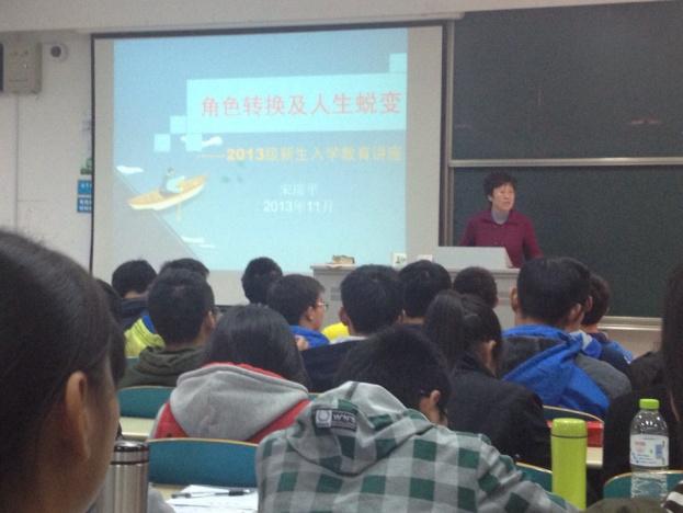 讲座中,宋书记向新生们讲解在大学里怎样完成角色转换及人生蜕变。主要就学习、考研及就业三个方面谈及各个专业未来的发展方向为新生解惑,并向新生们指出确立目标,努力奋斗,尽快地完成从高中生向老员工角色转换以及人生蜕变的重要性。