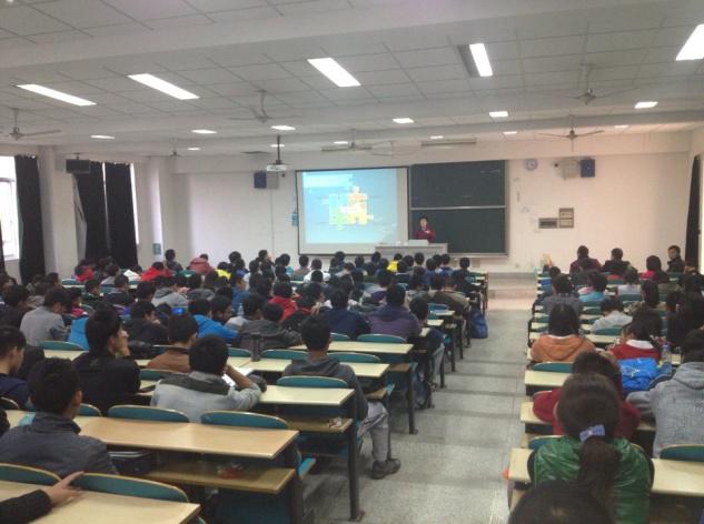 地学院13级辅导员郑茜丹和林牧及13级全体新生参与此次讲座。