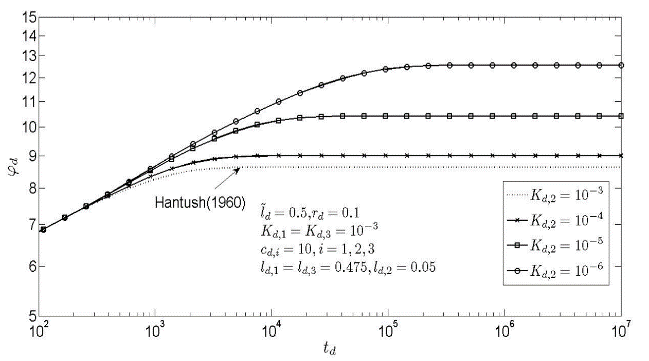 2014年4月24日,在公司报告厅庄超硕士做了《弱透水层释水及变形特性研究》学术报告,他首先介绍了硕士阶段的主要研究成果:冲击平原所构成的复杂含水层系统的结构、分布特点以及水力学参数特性;分析了弱透水层释水量与开采量之比以及弱透水层的水力响应时间,并以苏锡常地区为例计算了弱透水层释水量占该地区总开采量的比重;采用Modflow-2000模拟越流含水层系统;通过解析解推导讨论了抽水条件下弱透水夹层对含水层降深的影响(见附图);他还介绍了弱透水层变形试验。