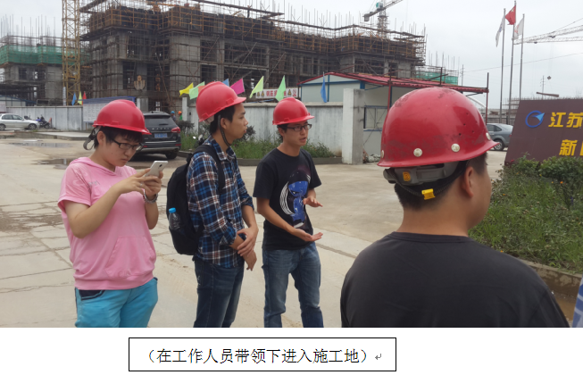 七月十二号,betway西汉姆联赴溧阳实践小组在溧阳新时代创智园开展第三天关于工程中各项问题访问。今天队员们在工地工程部工程师潘工的带领下深入工地进行学习了解工程中的安全问题。 在进入工地前,小组成员每人都领到一个施工安全帽,潘工要求进入工地后必须时刻戴上安全帽,向队员们讲解工地上的各项安全要求。他告诉大家说,安全是施工工程中的第一步,最重要的一步,也是必需的一步。只有有强力的安全保障措施才能最终使施工任务得以顺利完成。大家也在施工现场随处可见关于安全的标语。可见安全问题在施工工程中所占据的重要地位。