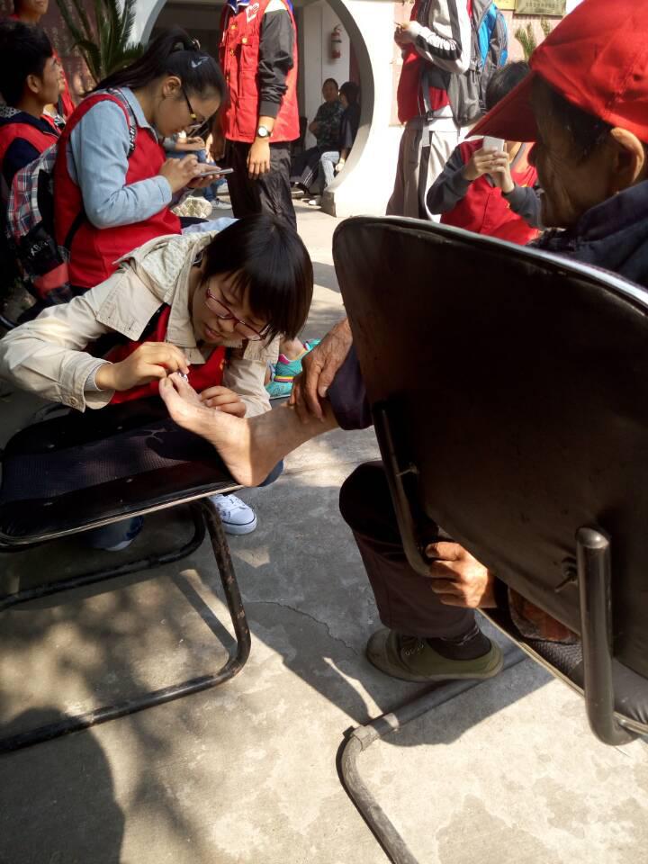 爱心暖夕阳 ——东山敬老院志愿活动 2015年10月11日,地学院青年志愿者大队组织并招募志愿者在江宁区东山敬老院进行了关怀探望的志愿活动。 活动当天志愿者们集合前往东山敬老院,在敬老院工作人员的带领协助下给老人分发水果等慰问品,向老人问好。