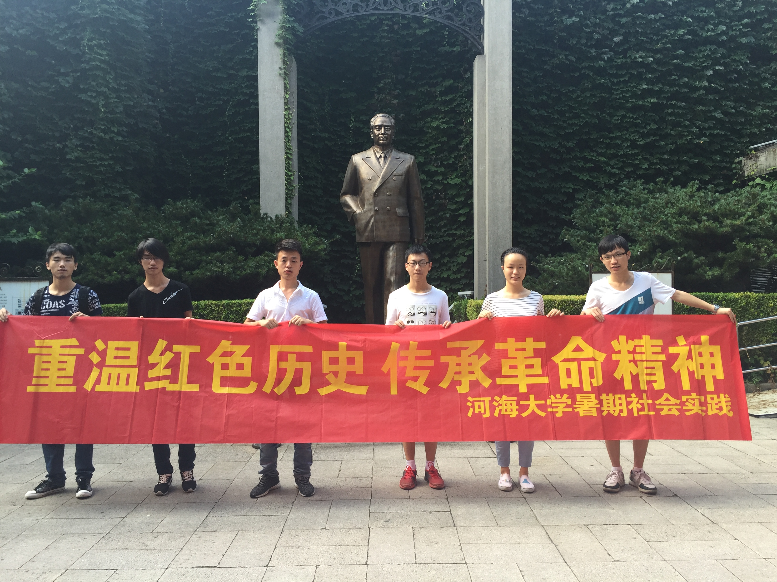 编者按:暑假期间,我院多支实践团队积极开展参观历史博物馆、寻访抗战老兵及革命先烈后代、游历红色景区等纪念活动,以“铭记历史、缅怀先烈、珍爱和平、开创未来”为主题,感受深邃历史内涵,接受革命传统精神洗礼,并以此为契机,弘扬爱国主义精神,树立正确的人生观、价值观、世界观。 寻访南京红色足迹 2016年7月8日至7月10日,betway西汉姆联2016年暑期社会实践团—南京红色足迹寻访团,陆续前往南京市梅园新村、南京市雨花台烈士陵园、侵华日军南京大屠杀遇难同胞纪念馆进行暑期社会实践活动。李钧、于小龙、陈朝俊、杜耀、谭雨霖、廖诗怡、冯立、外力等八名同学参与此次活动。 实践第一天,在南京市梅园新村队员们认真参观了中共代表团办事处旧址、国共南京谈判史料陈列馆、周恩来铜像、周恩来图书馆等景点。寻访红色足迹,感悟革命艰辛。与此同时,我们也留意到了,纪念馆存在的一些问题,如一些人在公共场所依然大声喧哗,手机未调至静音,小孩子在这严肃的地点追逐嬉闹,并及时向场馆方进行反应。
