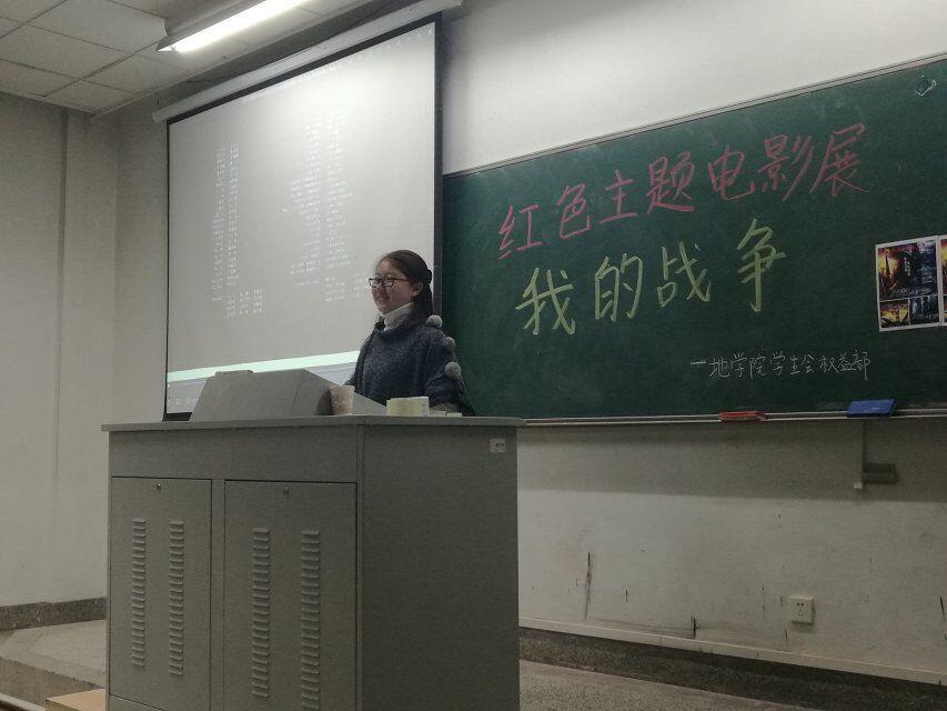 保家为国 血战到底 ——地学院员工会权益部红色主题电影放映活动 为纪念长征胜利80周年,弘扬伟大的长征精神、民族精神和时代精神,深入学习贯彻习近平总书记系列重要讲话精神,积极开展“两学一做”活动。2016年11月19日晚18:30,betway西汉姆联员工会权益部在致用楼119教室开展了红色主题电影展活动,为入党积极分子们播放了红色电影《我的战争》。 电影放映过程中,所有人都专注于电影情节,中途无人离场,深深地被电影吸引。电影放映结束后,同学们感慨万分,备受触动。16级入党积极分子代表高一寒、邓仁轩上台发言,表达自己的感想。本次活动在同学们热烈的掌声中圆满落幕。 此次电影放映,使同学们感受到了老一辈人为中国重获自由而付出的努力,让我们对祖国的爱更加深沉。我们应该继承和发扬先辈们留给我们的不怕困难,开阔前进的大无畏精神,为祖国的繁荣富强贡献我们最大的力量!