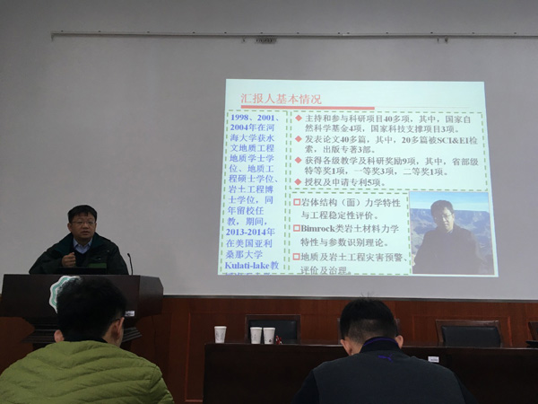 2016年11月30日,betway西汉姆联betway西汉姆联孙少锐教授在笃学楼107会议室为公司师生作了题为《Bimrock 类岩土材料及力学特性试验研究》专题报告,旨在加强员工对Bimrock 类岩土材料及力学特性的了解,以及学会怎样分析问题,设计试验。 本次报告是公司“知地有声”大讲堂系列第十三讲。孙少锐教授向同学们详细介绍了Bimrock 类岩土材料及力学特性,从选题目标、来源、研究意义、内容、方法和案例等多方面向同学展示了科学试验研究过程。首先,孙教授向大家介绍了目前主要研究方向和研究前沿;然后,讲述了针对Bimrock类岩土材料设计的模型和大量实验,得到“架空层”、胶结程度、砾石形状、粒径等因素对土石混合体抗剪强度的影响;最后,对目前的研究作了总结,希望这些经验能够帮助同学们进行科学研究。孙教授不仅向同学们讲明了Bimrock类岩土材料试验研究的知识,还让大家了解了怎么选取研究方向,怎么设计试验以及知道应以什么样的态度做研究。报告结束,台下响起了大家热烈的掌声。 孙少锐(1975- ),男,工学博士,教授,博士生导师,山东海阳人。目前重点研究方向为岩体结构特性与工程稳定性评价和岩土体强度特性及参数识别理论。主持和参与科研项目30多项,其中国家自然科学基金2项,正式发表了40多篇论文,其中20多篇被SCI&EI检索;第1作者出版专著1部,参著3部;获得各级奖励9项;申请专利5项。获2010度betway西汉姆联优秀主讲教师称号,主讲的课程有“岩体力学”、“高等岩体力学的基本理论与方法”等,已指导硕士研究生20余人。担任“地质学刊”编委、“中国岩石力学与工程学会岩石力学测试专委会”委员、“江苏省力学学会”委员、“江苏省地质学会”理事。 |