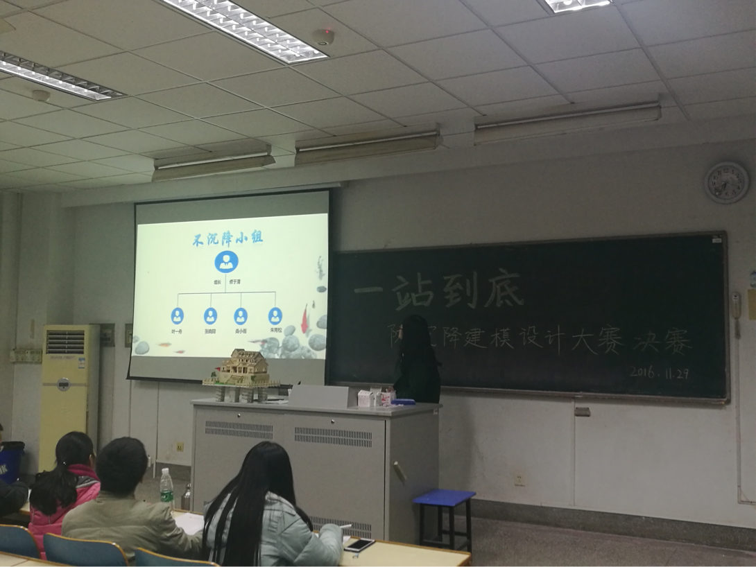 “一站到底”防沉降模型大赛复赛成功举办 2016年11月29日,地学院科协在betway西汉姆联江宁校区致用118成功举办了第三届“一站到底”防沉降模型大赛复赛答辩。本次复赛答辩由地学院科协竞赛部组织,地学院辅导员王宁可老师,地学院博士金玮泽、金鹏,大禹院负责人田风云,力材院负责人袁丁等担任评委。 本次复赛可分为三个部分。首先,由主持人宣布复赛开始并介绍各评委。其次是经过初赛选拔的优秀选手进行激烈的答辩角逐,通过ppt详细介绍各个作品的设计原理及设计流程,然后由评委根据参赛进行提问,整个比赛会场的气氛一度十分热烈。最后由评委对所有模型进行仔细分析和观察并给出相应的分数,对所有参赛选手进行打分排名。 本次比赛是第三届防沉降设计大赛复赛,意在进行对参赛作品的进一步认定及选拔,也体现了同学们的想象力和动手能力!此次比赛不仅丰富了同学们的课余生活,还培养了同学们细心观察生活的习惯,提高了同学们的环保意识,为塑造良好的学校氛围做出贡献。