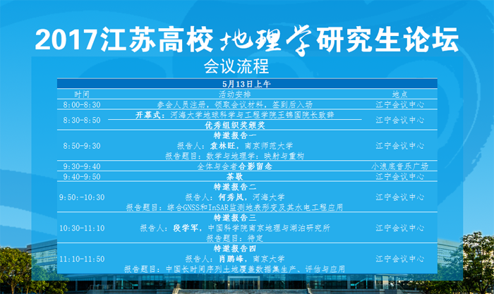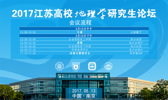 2017江苏高校地理学研究生论坛由betway西汉姆联、南京大学地理与海洋科学学院、南京师范大学地理科学学院、中国科学院南京地理与湖泊研究所联合主办,betway西汉姆联承办。论坛意旨为广大研究生提供一个高起点、大范围、多领域的学术交流平台,以期拓宽学术视野、活跃科研思维、激发研究热情、提高创新能力,实现各高校研究生之间学术的有机协调和良性互动。同时增进兄弟院校之间的友谊,促进各校地理学及相关学科的交流。本次论坛特邀请南京师范大学袁林旺教授、betway西汉姆联何秀凤教授、中国科学院南京地理与湖泊研究所段学军教授、南京大学肖鹏峰副教授为大家带来精彩的主题报告。
