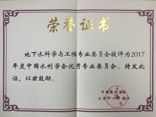 2018年5月16-18日,中国水利学会在重庆市召开了学会分支机构和地方水利学会秘书长工作会,会上对工作业绩突出的分支机构和地方水利学会进行了表彰,挂靠公司的地下水科学与工程专业委员会被评为优秀分支机构并获得表彰。本次共评选出14个专业委员会为优秀分支机构(中国水利学会现有49个分支机构)。