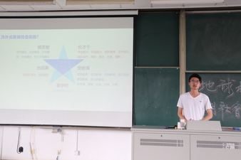 接下来由2017年省级优秀暑期社会实践团队负责人邓仁轩为同学们分享了准备实践、进行实践、总结实践的经验心得。并对刚接触暑期团队实践的17级同学们发表了自己“做社会实践要把自己当成一个梦想家”的看法,即鼓励大一的同学们认真投入到实践中,用心做好实践,在实践中学习提升自己的能力、增长自身才干。