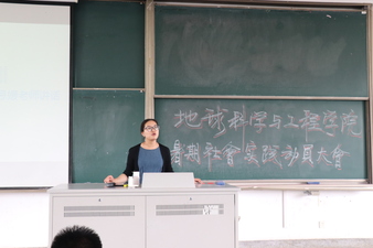 在大会的开始请到了学院团委书记吴思媛老师进行讲话,吴老师鼓励同学们积极参与到本次暑期社会实践中,强调了“受教育、长才干、做贡献、出成果”的实践目的,并表达了对高年级同学引领大一的同学们提前了解科研创训项目的期待。
