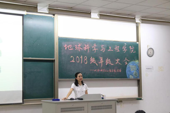 9月1日,地学院2018级本科生首次年级大会在江宁校区致用楼201顺利举行。公司党委副书记杨天、学院2018级本科生辅导员闫蕴琦、魏裕丰老师以及2018级全体本科生参加了本次大会。会议首先由杨天副书记对学院专业、学院规章制度做了详细讲解,希望同学们能加强专业认知和自信,在大学期间增长学识和才干,学成本领服务社会。随后辅导员闫老师对18级新生近期起航教育周安排做了说明,并现场开展了给三年后的自己写一封信的职业规划主题活动,希望新生对自己的大学四年能提早做好规划。最后辅导员魏老师对同学们未来的学习生活、人身财产安全、校园规章制度具体的进行了要求和规划,祝愿同学们愉快地度过大学四年。