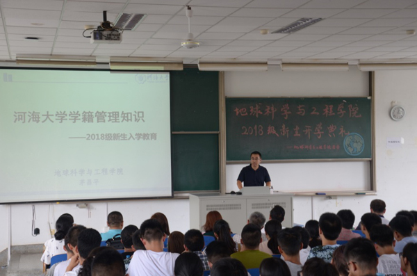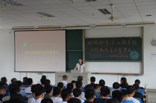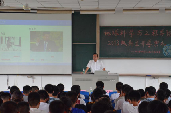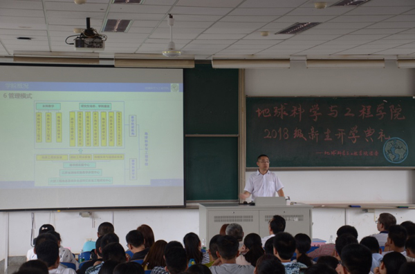 9月2号,地学院2018级本科生开学典礼于在致用201顺利举行,公司党委书记曲永岗、经理王锦国、副经理雍斌、杨英宝、茅昌平、党委副书记杨天、学院各系负责人、2018级各班班导师及全体辅导员出席本次大会。会议由杨天副书记主持。