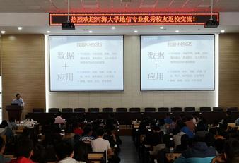 2018年10月26日星期五下午,职业生涯规划系列讲座地信专场在笃学楼208召开。来自腾讯公司高级产品经理黄毕,阿里云DataV数据可视化团队数据技术专家汪明,国睿科技系统工程中心副主任叶楠,北京太比雅科技技术总监、总办负责人李义云,镇江新鸿智慧水务技术有限公司负责人王燕五位员工与同学们分享了自己的成长历程、专业前景和就业方向。