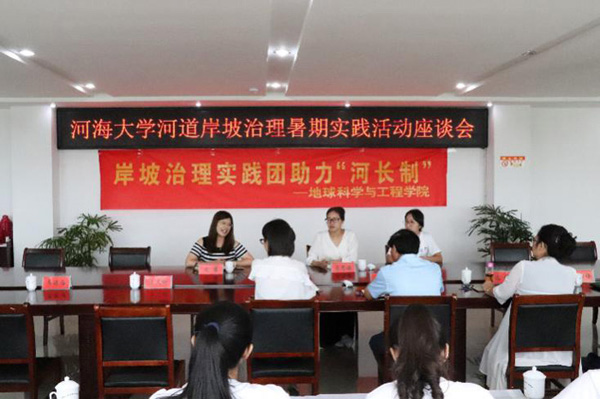 2018年暑期,地学院芜湖六郎河道岸坡治理实践团在地学院青年教授、校团委兼职副书记刘瑾老师,学院团委书记吴思媛老师的带领下,到访芜湖县六郎镇、芜湖市水务局河长办展开实践调研,协同博士生、研究生组成专家团将地质工程专业边坡治理的知识和经验带到基层,助力“美丽乡村”建设和基层河长制科普。