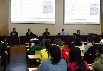 随后五位代表同学——15级地信二班李琳,16级地质三班宋旌鸣,17级地信二班曾冰茹,17级测绘三班蒋居锺,16级地信一班郭京鑫以答辩的形式依次向同学们从各个方面介绍了本班的建设情况,其中包括班级制度建设、班风建设、思想教育、素质拓展等方面,每位代表介绍后,吴老师都一一做出了点评,并提出了希望大家日后团建学习的优点之处。