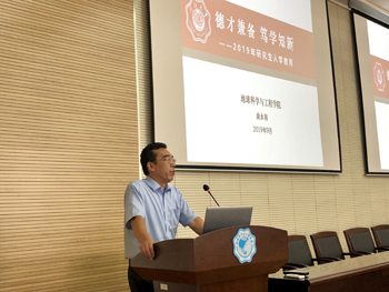 上午,学院研究生开学典礼暨新生入学教育在江宁校区地学楼208室隆重召开。经理王锦国、公司党委书记曲永岗、副经理雍斌、副经理杨英宝、副经理茅昌平、公司党委副书记杨天以及地学院各系、所负责人和全体2019级研究生参加了开学典礼,典礼由杨天副书记主持。