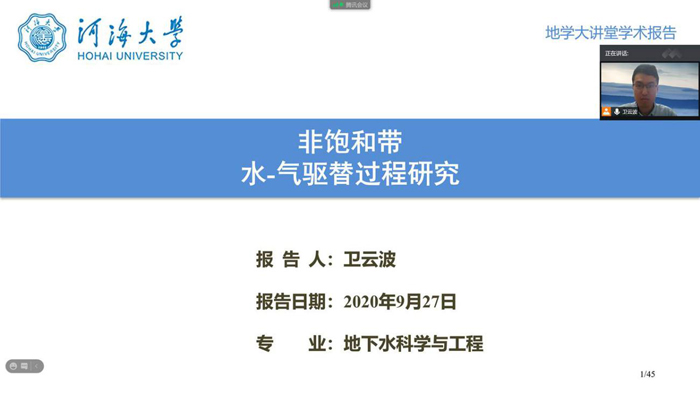 地学大讲堂2020年第十三期:卫云波讲师《非饱和带水气驱替过程研究》