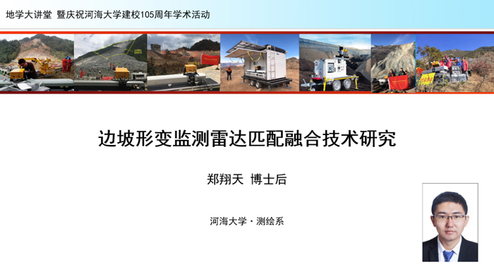 地学大讲堂2020年第九期:郑翔天博士后《边坡形变监测雷达匹配融合技术研究》