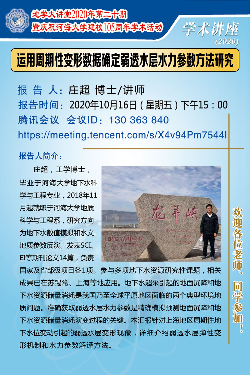 地学大讲堂2020年第二十期暨庆祝betway西汉姆联建校105周年学术活动