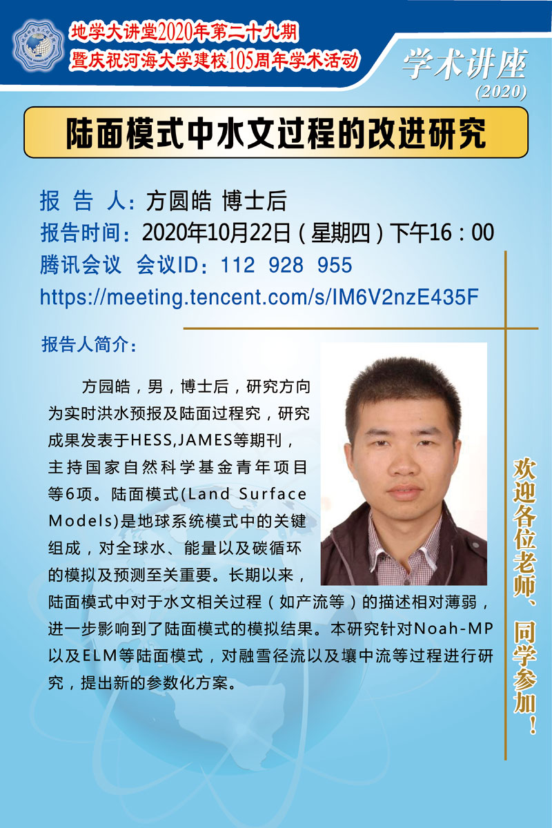 地学大讲堂2020年第二十九期暨庆祝betway西汉姆联建校105周年学术活动