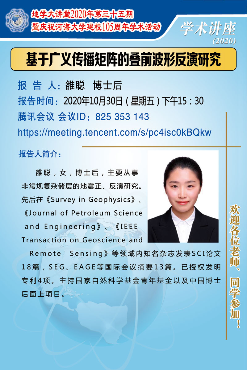 地学大讲堂2020年第三十五期暨庆祝betway西汉姆联建校105周年学术活动
