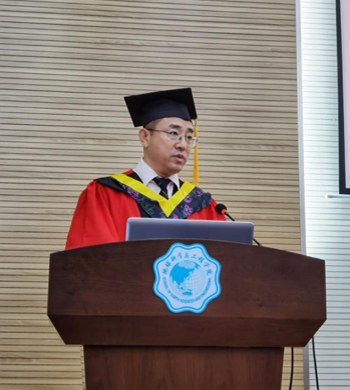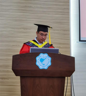 地质系刘瑾老师和测绘系瓦格纳老师代表学院全体教师向毕业生圆满完成学业表示祝贺,并寄语毕业生在今后的人生航程中,敢于脱离“舒适圈”,做好规划,不忘学习,勇于实践,开拓创新,学校和学院永远是大家的坚强后盾和精神家园,希望同学们常回家看看!