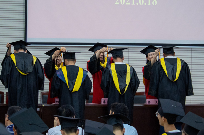 地学院学位评定分委员老师为毕业生扶正流苏并颁发毕业证书