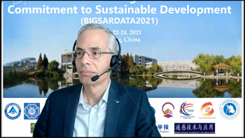 可持续发展大数据国际研究中心主任、会议名誉主席郭华东院士致欢迎辞 会议国际指导委员会主席、复旦大学金亚秋院士致贺辞