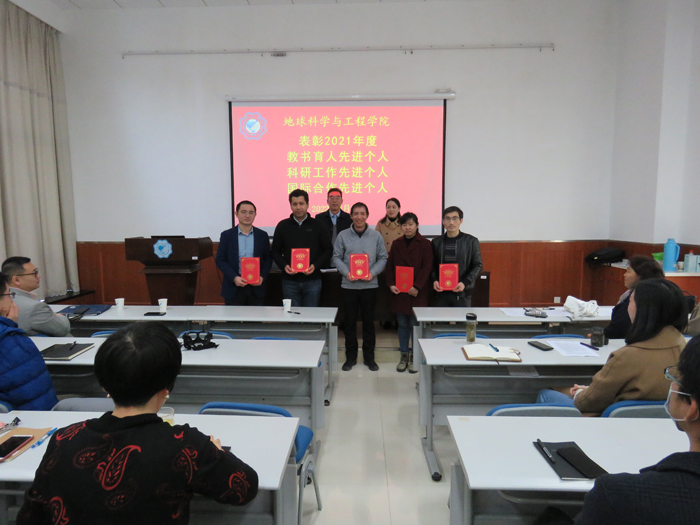 会上,杨英宝副经理首先宣读了《关于表彰2021年度教书育人先进个人、科研工作先进个人、国际合作先进个人的决定》,向获奖的老师表示祝贺,并和曲书记为获奖的6位老师颁奖。为表彰先进,宣传典范,进一步增强广大教师的荣誉感、责任感,2021年,经公司党政联席会研究,于每年年底评选表彰一批在教书育人、科研工作、国际合作工作中贡献突出的先进个人。颁奖后曲书记希望获奖的老师再接再厉,再创佳绩,也希望广大教师以受表彰的优秀教师为榜样,爱岗敬业、恪尽职守、争做“四有”好教师,为学院改革和发展作出更大的贡献。