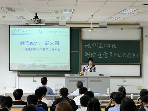首先是何秀凤老师带我们走进测绘。何老师认为测绘涉及广泛,可用“测天绘地,展宏图”来形容。她主要从四个方面进行了讲解。一是测绘和生活;二是测绘装备和手段;三是河海测绘培养方向和科研特色;四是同学们最关心的问题,也就是河海测绘的就业前景。这让同学们不仅了解到测绘专业的新兴技术、测绘行业的发展现状,也对自己未来的发展有了一定的思考。