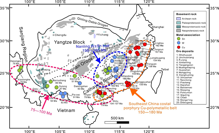 Sn为典型的亲氧元素,其矿化往往与富挥发份(F、Li、B等)、低氧逸度、高分异的S型花岗岩密切相关;而Cu为典型的亲硫元素,其矿化与富水、高氧逸度、低分异的钙碱性I型花岗岩紧密相关。截然不同的地球化学性质致使两者很难共生。然而,在部分锡矿中伴生有具有重要工业价值的铜矿化,其中铜的来源及其与高分异花岗岩之间的成因联系悬而未决,一直是矿床学领域研究的热点问题。