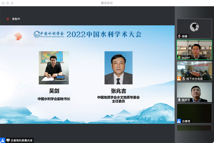 2022年11月9日,中国水利学会2022学术年会地下水分会成功召开。根据疫情防控需求,本次会议通过线下线上相结合的形式举行,在betway西汉姆联设立了线下会场。年会由中国水利学会地下水科学与工程专业委员会、中国地质学会水文地质专业委员会、betway西汉姆联、黄河勘测规划设计研究院、华北水利水电大学、山东科技大学共同承办,王锦国教授为分会场主席。中国水利学会副秘书长吴剑,中国水利学会地下水科学与工程专委会主任委员张兆吉分别在开幕上致辞。