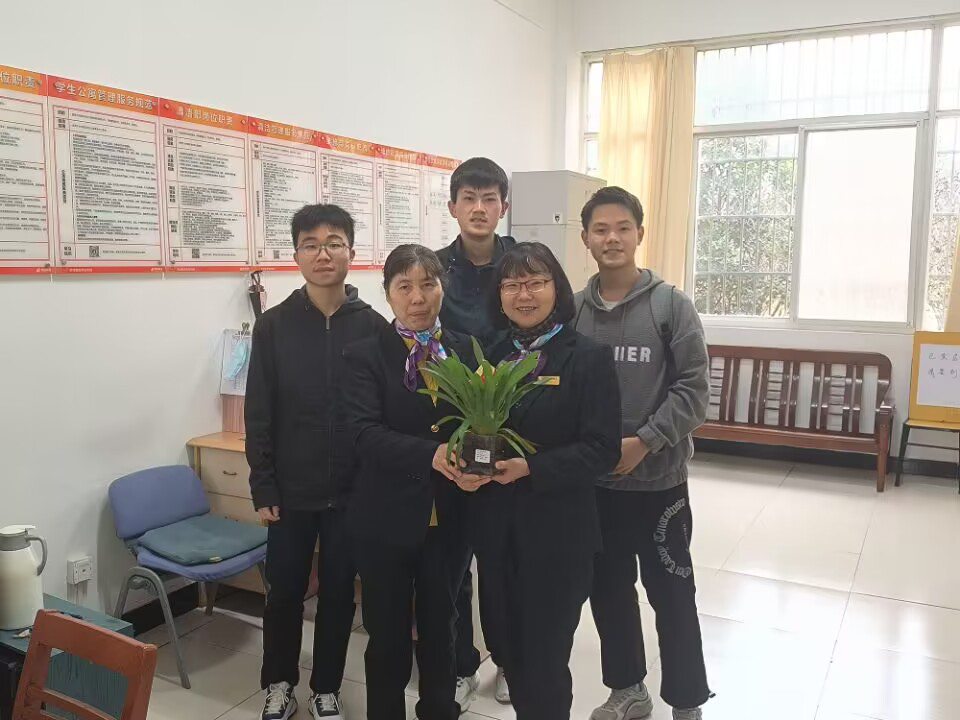 下午四点,生活服务部的同学们来到宿舍,将手里的盆栽和写满祝福的贺卡送给阿姨,向阿姨们表达大家最真挚的情感,感谢她们平日对大家的关心和照顾,然后与阿姨们拍照留念。同学们先后走访了4舍、8舍、11舍、13舍、18舍、22舍、23舍、25舍共8个宿舍,为学院相关宿舍物业阿姨送去了节日的温暖与祝福。