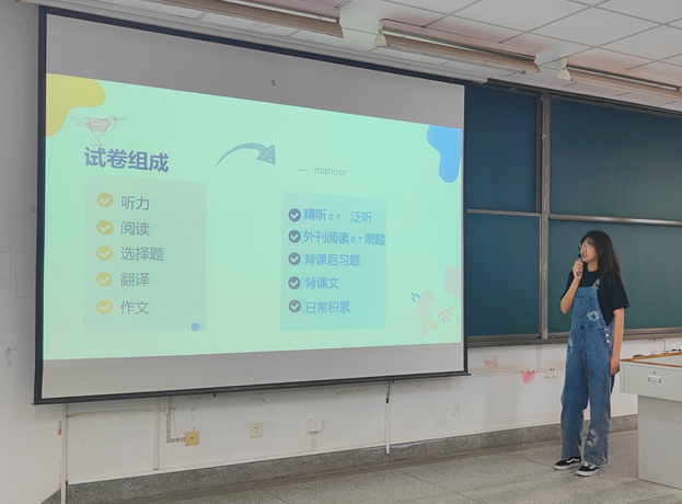 大一、大二的课程中,英语占了很大的比例,英语学习技巧的培养对英语学习至关重要。2021级地质工程专业的单鹏颖同学向大家分享了英语学习经验。她提到,英语的学习同样需要大家持续的勤奋和努力。英语不仅仅是单词的读写记背,还需要课上的积极互动和课后的巩固练习。单鹏颖同学向大家分享了几种英语学习方法,她认为英语单词的记忆是多元化的,而不是仅仅依靠纸质材料的抄写。英语四六级考试在即,单鹏颖同学鼓励同学们积极准备大学四年的英语四六级考试,争取能取得一个优异的成绩。