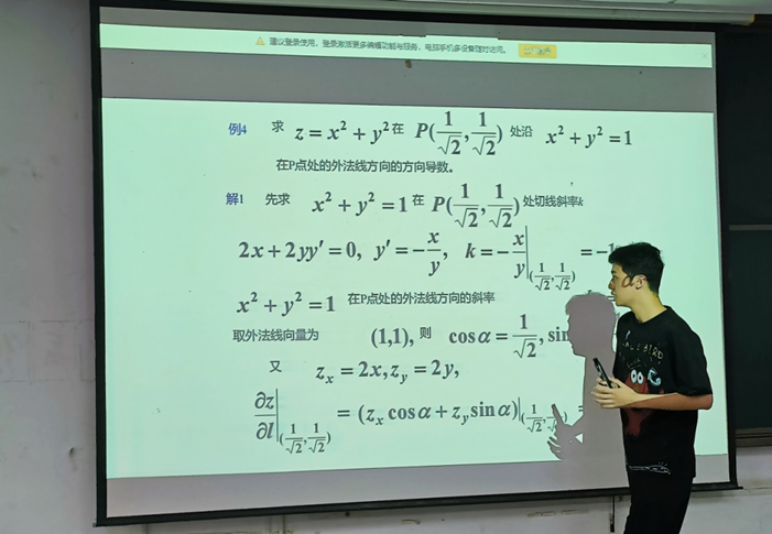 2021级地质工程专业张令辰同学向大家分享了高数学习方法的相关经验。张令辰同学根据自己大一的经历,为同学们列举了高数学习中的易考点和易错点,并传授给大家一些易懂、易记的方法,引导同学们根据自己的能力,对课后的习题进行择优练习。学习态度也同样重要,张令辰同学同时提醒学有余力的同学们戒骄戒躁,应长期做题、积累经验、善于总结,才能取得好成绩。