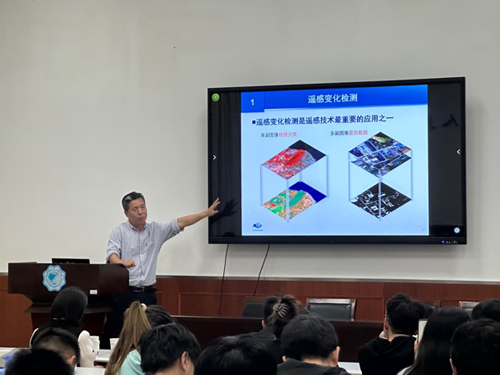 2023年5月6日下午,武汉大学张良培教授应测绘科学与工程系主任苏红军教授邀请来公司进行学术交流,并作了题为《变化检测——从“像素”、“对象”到“场景”》的学术报告。地学院副经理杨英宝教授、遥感与空间信息工程研究所所长徐佳副教授、李浩教授、徐南副教授及学院七十余名研究生参加了此次报告会。会议由苏红军教授主持。
