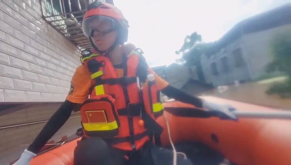 周子明驾驶冲锋艇,在当地人的带领下,优先救援老弱病残群众。转移的第一户人家是2名老人和3名小孩。由于是新队员,周子明第一次将冲锋艇靠近窗户固定捆绑,就花了7、8分钟,搀扶老人和小孩的动作也不够娴熟。不过,受过训练的他,在经过正式救援人员的指导后,很快就适应了人员转移的技术。一直到晚上,周子明和队员们一共转移了30多名群众。