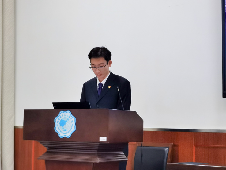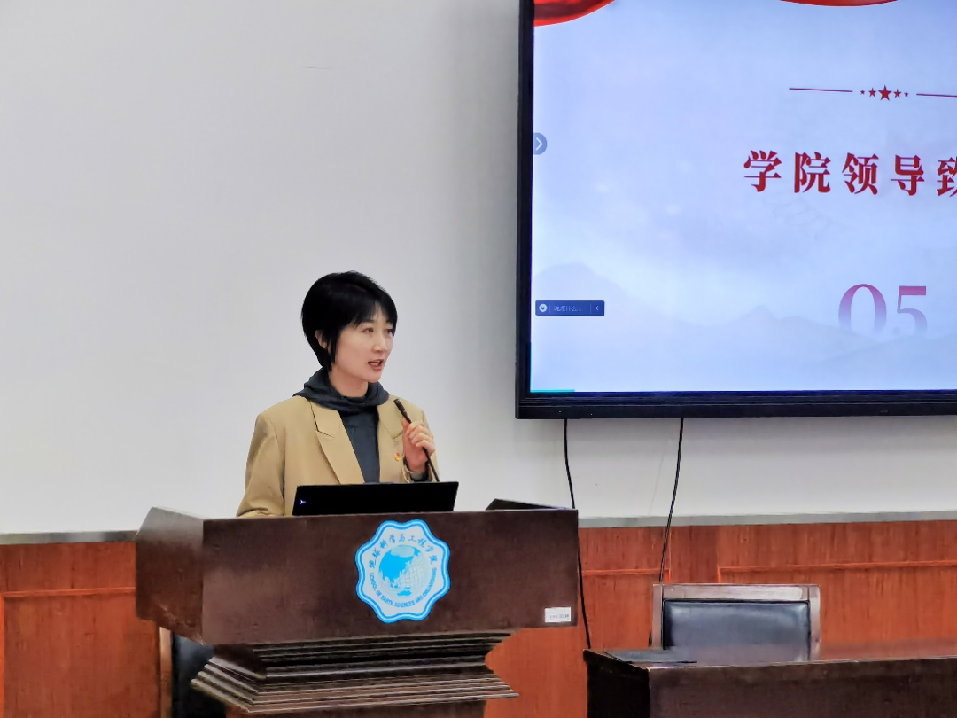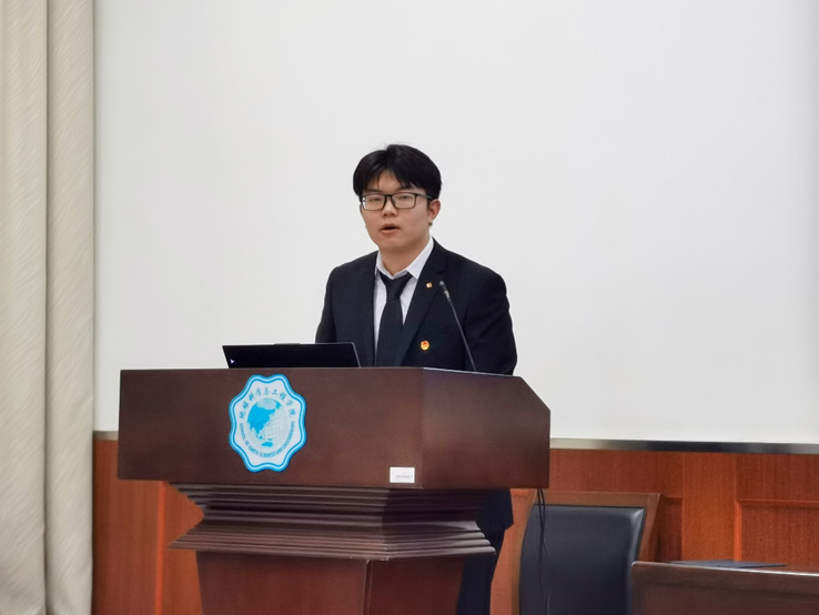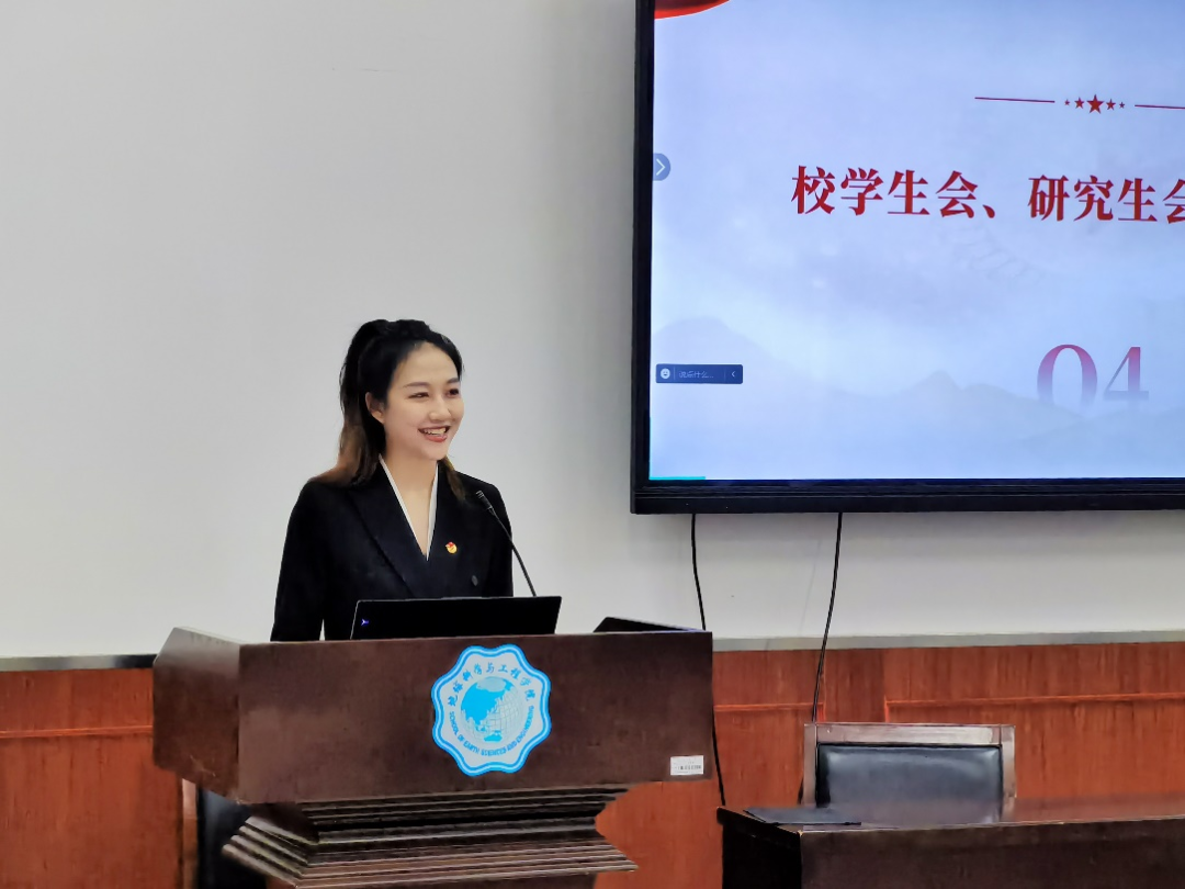 校研会代表周宇婷在致辞中肯定了地学院研究生会在过去一年中的工作成绩,指出研究生会成员要肩负自身使命,坚持思想引领,持续深化改革,强化服务意识;同时也表达了最诚挚的祝福,希望地学院研究生会能够更好的帮助同学,服务同学。最后,她鼓励公司新一届研究生骨干们以本次大会的召开为新的起点,不忘初心、继续前进,团结带领广大青年员工展现新作为、在伟大中国梦的实现进展中贡献青春力量。