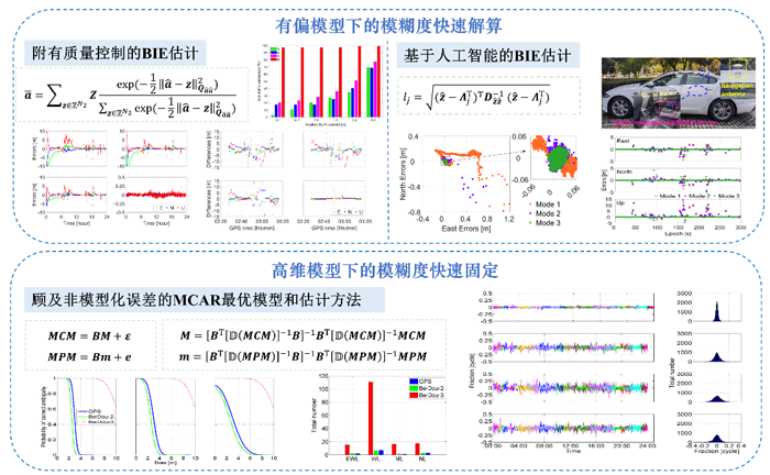 在模糊度快速解算固定方面,系统研究了面向复杂条件的GNSS模糊度快速收敛固定理论与方法。具体成果包括:发展了由恶劣观测环境或低成本接收机等引起模型有偏状态下的模糊度快速解算方法,重点给出了附加质量控制的最优整数等变估计方法,以及基于非监督学习的最优整数等变估计方法,有效解决了偏差引起的模糊度固定率低、可靠性差的问题;扩展和统一了多频相位模糊度固定(MCAR)理论,给出了顾及非模型化误差的MCAR最优模型和估计方法,尤其窄巷固定率提升约20%,且有效缩短了固定时间。