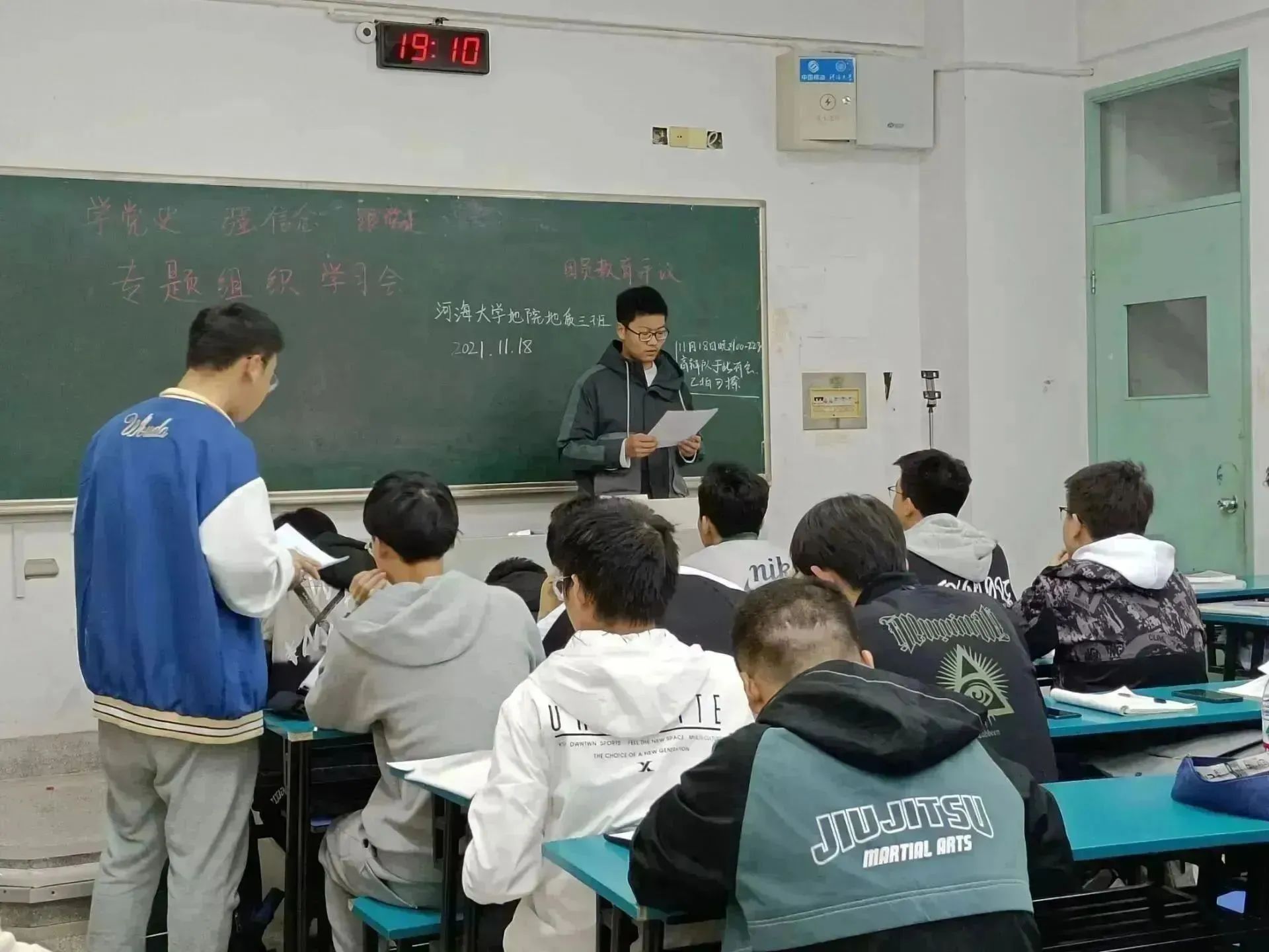 班级党员同学带领班级学习习近平新时代中国特色社会主义思想,累计开展20余项思想引领类主题教育活动,感悟新时代青年的责任与使命,青年大学习网上主题团课学期完成率100%。班级多次组织学习先进事迹,开展主题为“让报国初心铺染生命底色”的班会活动,从黄大年科研之纯粹,讲到回国之迫切,体悟其“生命,为祖国澎湃”的爱国赤诚,厚植一颗科研为祖国的大我之心。