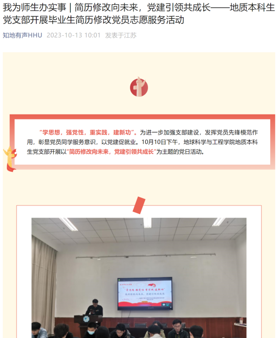 2023年,地学院传媒中心在betway西汉姆联团委、地公司党委的指导下,秉承着为广大师生提供优质信息服务的宗旨,有效运营学院各个新媒体平台,为学院提供符合新时代要求的信息服务,对外展示好betway西汉姆联的独特风采。其中,借力学院网站、“知地有声”微信公众号等新媒体平台,本中心开设学风建设、党建学习、心理建设等多个主题教育专栏,地学榜样、我为师生办实事等特色专栏,不断关注思想教育、志愿服务、社会实践等多方面信息,宣传各项活动,共计知地有声推送近200篇,学院官网学工板块发布内容80篇。本中心致力于为院内师生提供多方位信息服务,坚决做好舆情管理工作,积极构建良性网络生态环境。