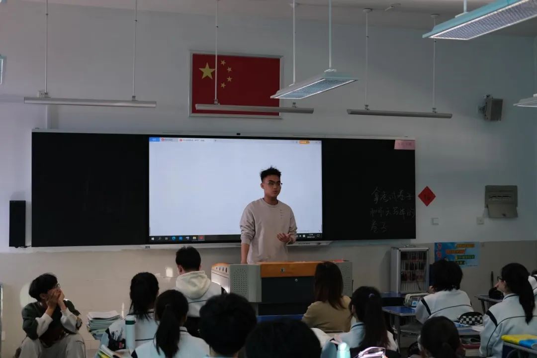 在PPT展演结束后小队进入班级中进行小班宣讲。在进班宣讲过程中,成员们主要开展了自由提问环节,团队成员主要围绕宿舍住宿条件,食堂菜品风格等个性化的问题为同学们答疑解惑。同时分享了对高三同学备战高考时有用的一些经验和方法,同学们纷纷表示收获很多。
