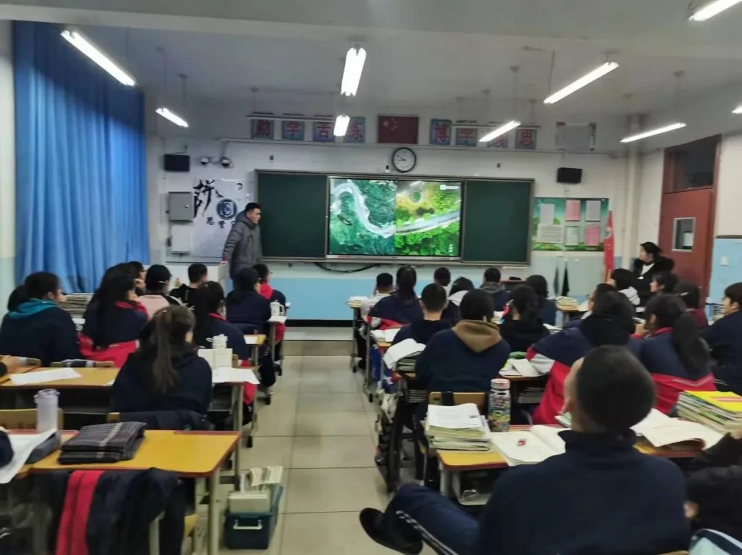 2024年1月25日下午,由地学院杨晓彤,贾尔恒阿依,法学院王振杰三名同学组成的小分队来到新疆维吾尔自治区哈密市伊州区第二中学进行回访宣讲活动。