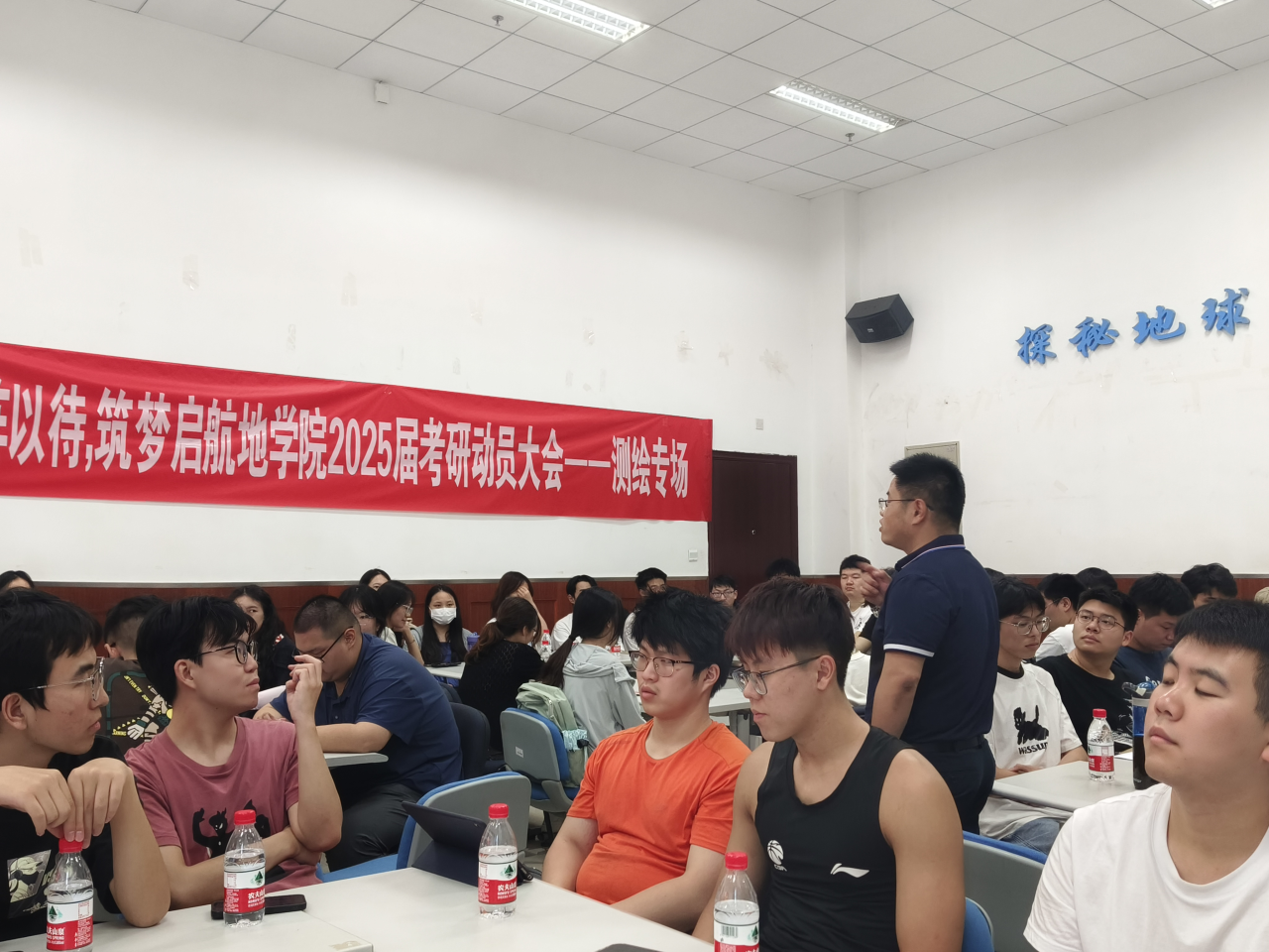 最后,李浩老师对动员大会进行总结发言。李老师介绍了测绘专业近年的考研情况及就业形势,强调了读研对于个人成长和职业发展具有重要意义。他指出,要树立远大的目标与理想,精准把握考研与就业之间的内在联系,时刻关注目标院校和专业的最新动态,明晰自身定位,充分认识自己的优势和不足,在考研路上努力拼搏。