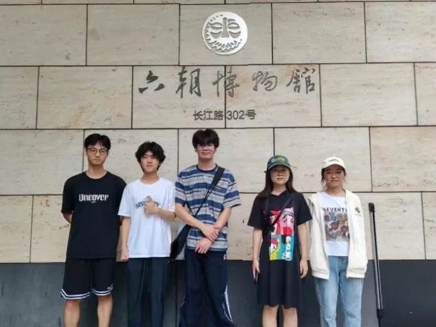 六朝博物馆展出青瓷器、陶俑、墓志、建筑构件、石刻、书画等大量珍贵文物以及六朝建康城城墙和大型排水设施遗迹,分四个篇章阐述公元3至6世纪的东方大都会主题,设有“六朝帝都”“回望六朝”“六朝风采”“六朝人杰”四大展厅。“六朝帝都”展厅中,从六朝古都遗址文物,领略东吴、东晋、宋、齐、梁、陈六朝辉煌。“六朝风采”、“六朝人杰”体现以建康为中心的六朝文化,上承秦汉,下启隋唐,呈现出转型时期的特点。“金陵昔时何壮哉,席卷英豪天下来”,步入展区,实践团成员共同追寻六朝人物的脚步,领略他们的才华与智慧。