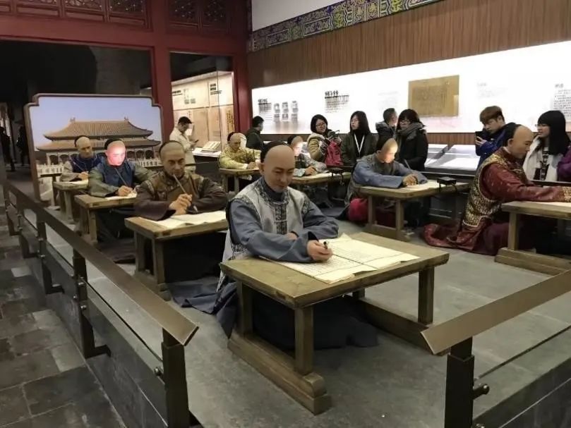 “御笔封题墨未乾,君恩重许拜金銮。” 科举考试是隋唐到清代历经一千三百多年封建王朝分科考选文武官吏及后备人员的制度。直至今日,科举考试中的一些制度仍有借鉴之处。序厅中陈列着历代状元的金榜题名碑,让人不禁肃然起敬。随后,实践团依次参观了“科举之路”、“金榜题名”、“状元及第”等展厅,了解到从隋朝创立科举制度到清朝末年废除科举,这一千三百多年间科举制度的演变过程。