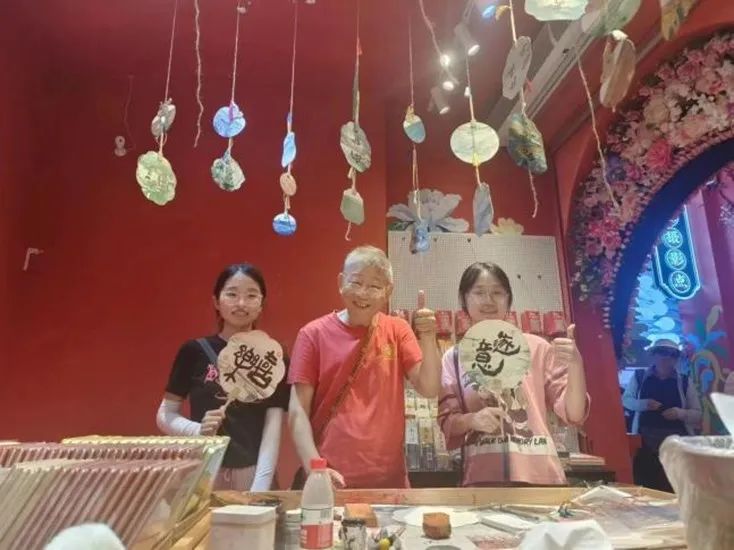 “一半天成,一半人为;漆借水势,水推漆动;清水芙蓉,漆扇无双。”漆扇,作为一种结合了传统非遗漆染工艺的艺术品,不仅具有实用性,如夏日乘凉或作为居家摆件,还具有艺术性和文化价值,是中华文化的重要符号。实践团前往南京市非遗文创中心,通过亲身体验国家级非遗漆染工艺,感受大漆的灵动之美。