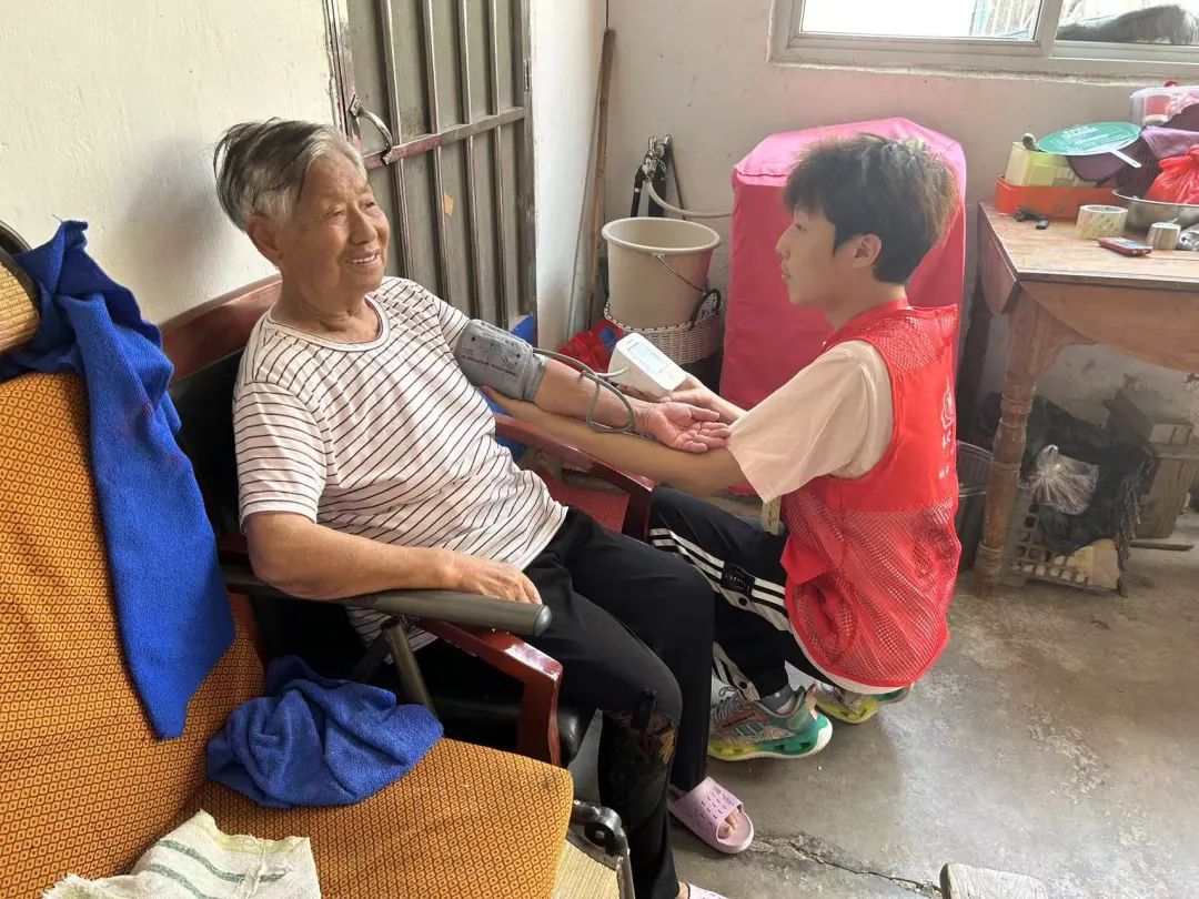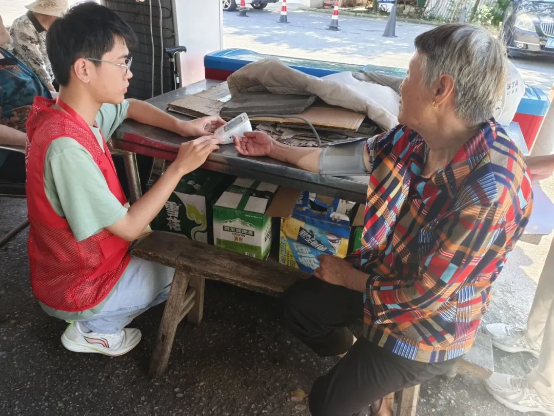 7月7日,实践团走进东山街道李家村,为村里老人测量血压。在测量血压的同时,实践团成员还向老人们科普了一些健康饮食和日常保健的知识,叮嘱老人关注身体健康。实践结束后,志愿者们返回社区服务中心,与工作人员交流了测量数据以及老人的身体健康情况。