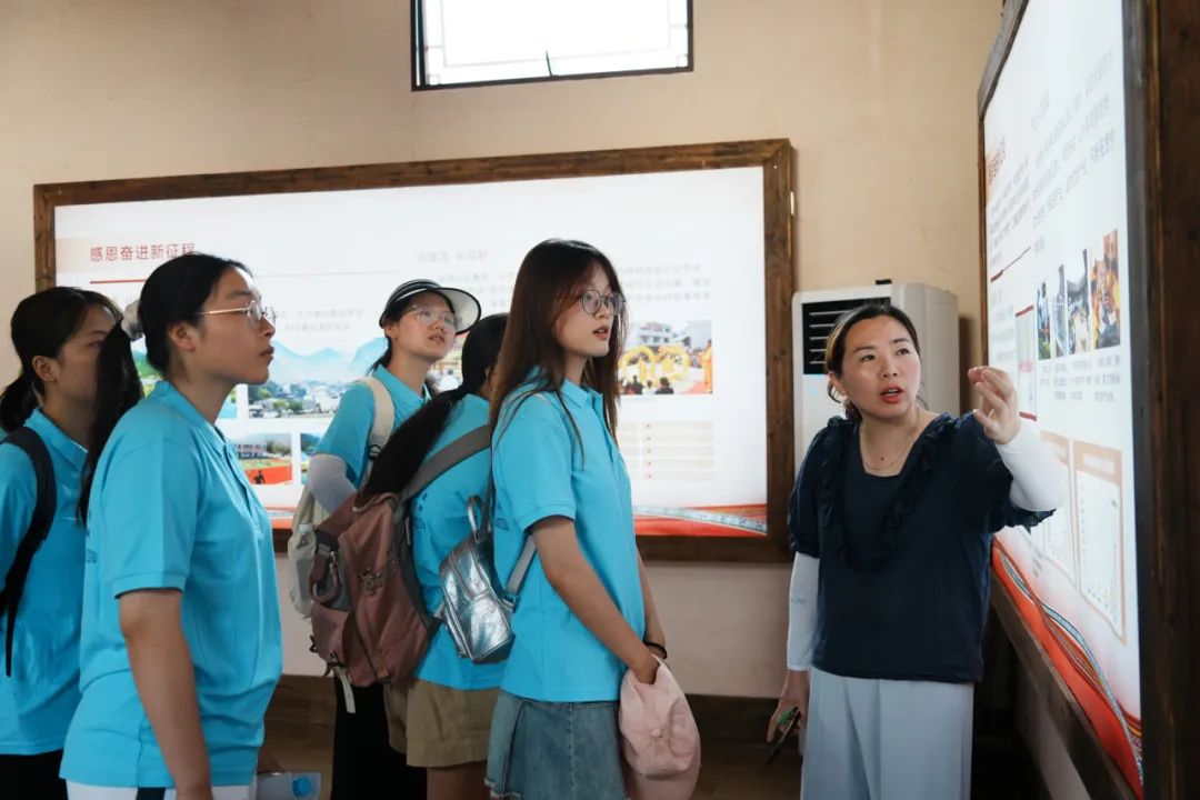 在党群活动中心,团队成员们聆听了杨玉燕馆长生动详尽的村史讲解。通过一幅幅珍贵的历史照片和一个个感人的脱贫故事,大家仿佛穿越时空,亲历了赤溪村从贫困落后到繁荣振兴的变迁过程。这段村史不仅展现了当地人民勤劳勇敢、自强不息的精神风貌,更深刻诠释了“弱鸟先飞,滴水穿石”的坚韧与执着。